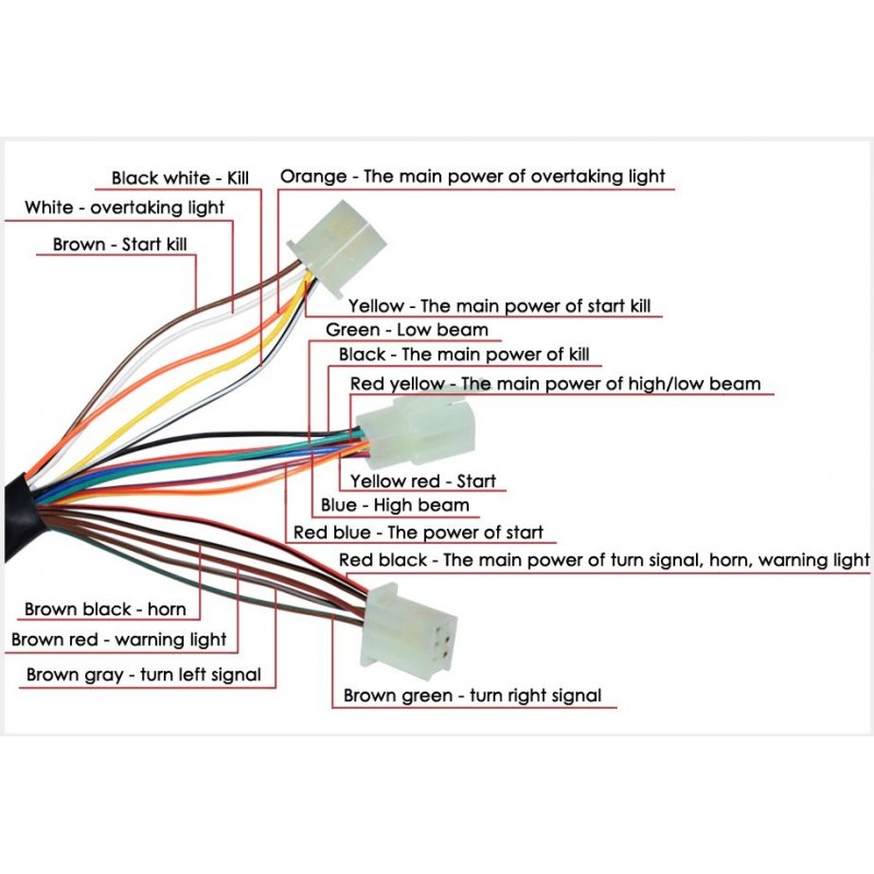 Przełącznik zakończony 3 wtyczkami i może wymagać przeróbek do podłączenia.