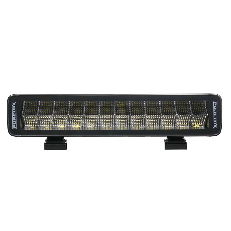 Purelux Terrain Straight 120W to kompaktowa lampa robocza o długości 36 cm, zaprojektowana do pracy w wymagających warunkach. Dzięki szerokiej wiązce światła i strumieniowi świetlnemu na poziomie 10 080 lumenów skutecznie oświetla obszar roboczy na krótkim i średnim dystansie, zapewniając równomierne światło bez ciemnych stref.